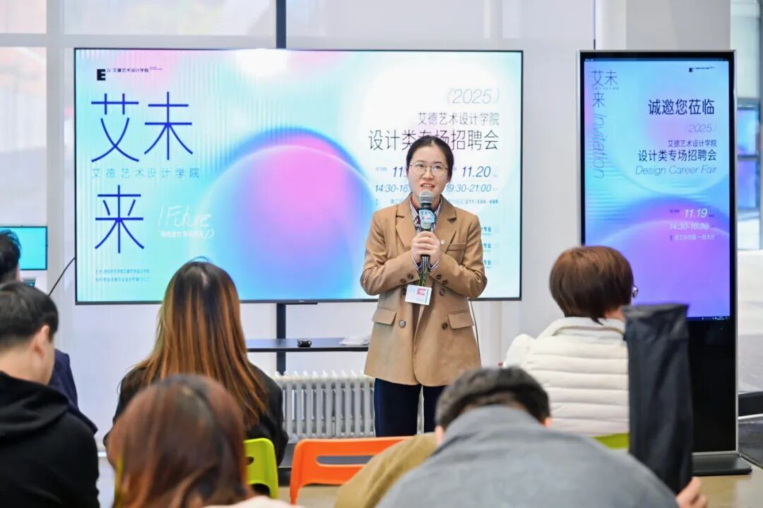 在这满载收获与希望的季节里,艾德艺术设计学院设计类专场招聘会于2025年11月19日下午,在南工坊西翼一层大厅成功举办。本次活动旨在为视觉传达设计、环境设计、数字媒体艺术设计专业的优秀学子,与深耕行业的杰出企业之间,架起一座双向选择的金色桥梁。