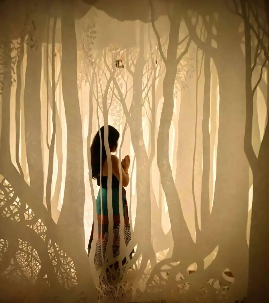 在日本艺术家柴田步美(Ayumi Shibata)的装置作品中,纸通过层层叠叠的光影,成为建筑与空间之间的呼吸装置。她让纸的“轻”与“透”形成时间的褶皱,使观者在光中行走,如在冥想。荷兰艺术家彼得·亨特纳(Peter Gentenaar)创作中以纸和竹骨架为基本形态,展现可能实现的任何想法,探寻自然元素流转相接之中蕴含的生命记忆。以纯粹的本质为线索连接起自然和人文的形态,引领人们以崭新的视角去感受跨越媒介和概念的温柔并有力的表达。