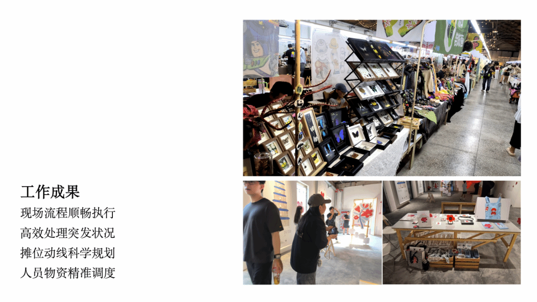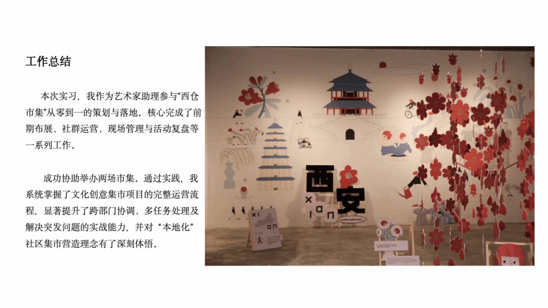 在西仓文创公园的实习,我见证了一个社区文化项目从0到1的诞生:从理念学习、策划筹备,到现场执行、复盘优化,完整走过线下活动运营全链路。最宝贵的是悟到“社区营造”的真义:不只是办活动,更是创造让人相连的瞬间,让理念在真实互动里生根。这段经历锤炼了我的统筹、沟通与解决问题能力,也给了我对文创产业落地最温暖而笃定的认知。