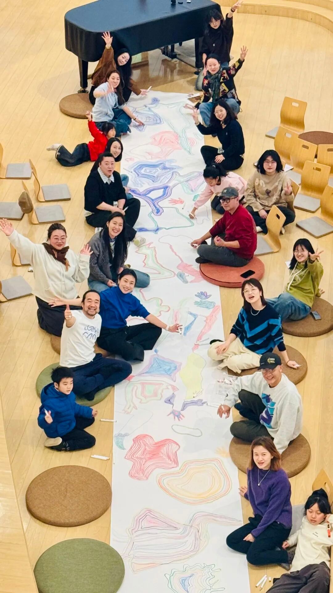 三个小时的时光里,没有紧绷的规则束缚,没有专业门槛的限制,参与者们围聚在长长的画布旁,带着各自的心境与期待,以画笔为媒介,将心绪化作线条,把感悟融于色彩,在集体创作的氛围中完成了一场与自我、与自然的温柔对话。