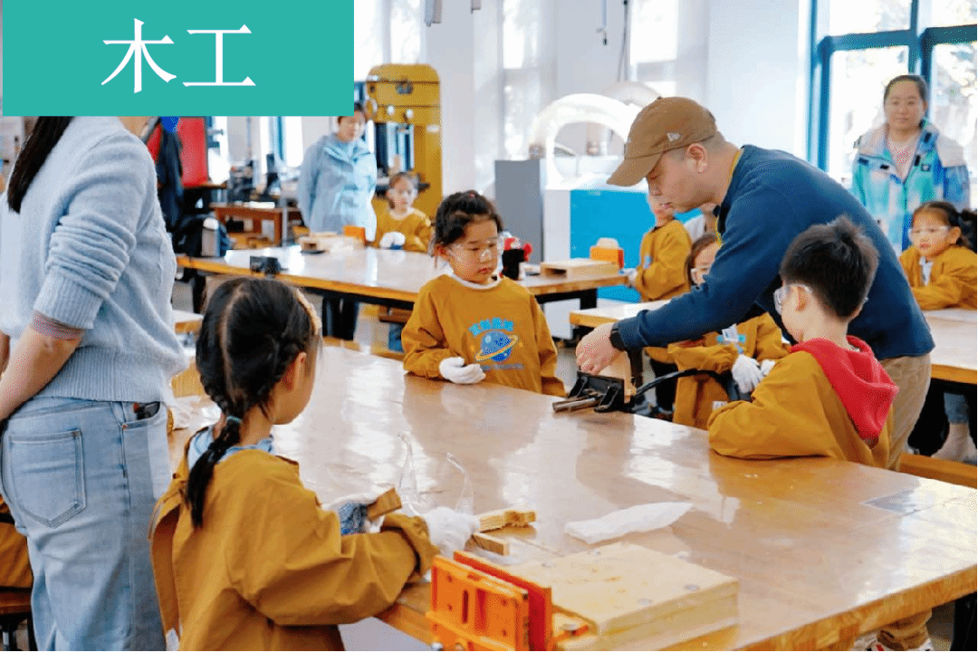 开设 3D打印、AI电影、设计思维、木工、印刷等主题课程,