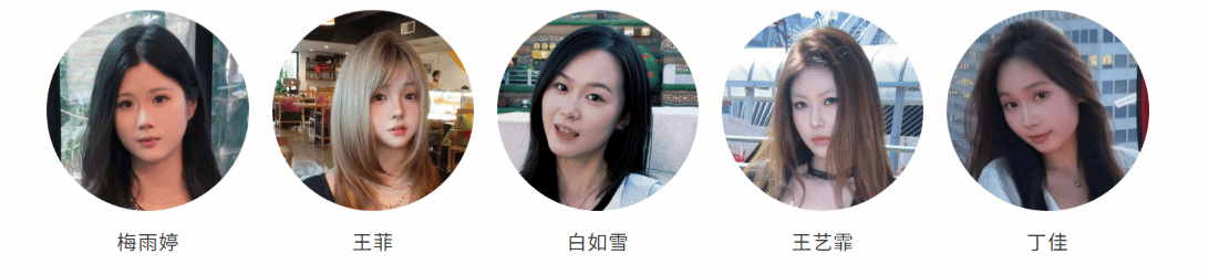 梅雨婷、王菲、白如雪、王艺霏、丁佳