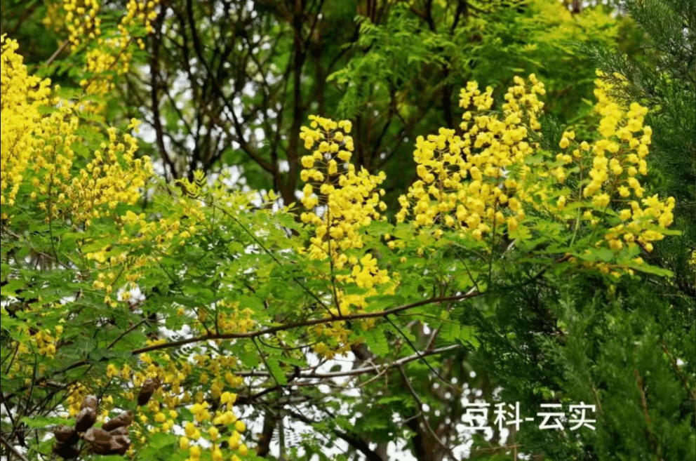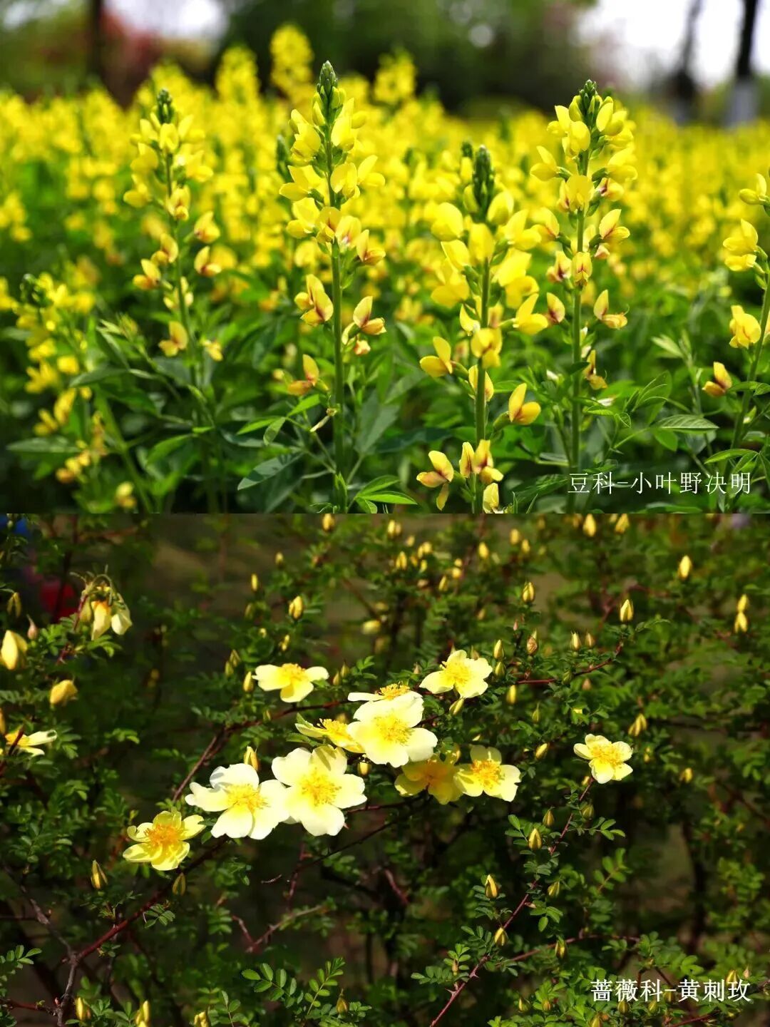 棣棠正迎来盛花期,金黄色的花瓣层层叠叠,鲜亮明艳,在绿叶的衬托下格外醒目,铺就了春日最温暖的底色。路边偶遇的云实,一串串亮黄色的总状花序低垂,在阳光下金灿灿一片,不过它的枝条上有刺,观赏时请保持距离。黄刺玫也已绽放,花朵金黄灿烂,远看如碎金洒在枝头。而双荚决明即将接棒,羽状叶片间托起一串串明黄,为园子增添了一份轻盈的期待。