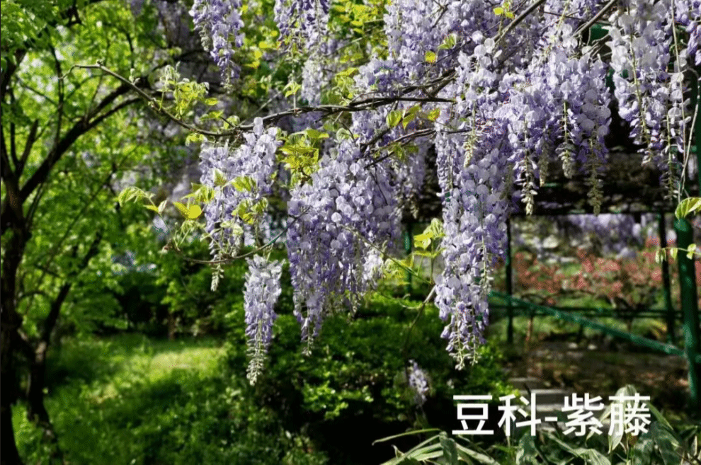 此时,紫色鸢尾也如蓝紫色的蝴蝶般翩翩落于绿叶间,花瓣上的脉络精致如画,仙气飘飘。抬头望,长廊上的紫藤正垂下一串串蝶形的蓝紫色花穗挂如瀑布,如梦似幻,微风拂过,暗香浮动,是藤蔓园最梦幻的景致。它们共同谱写出春天最迷人的尾韵。