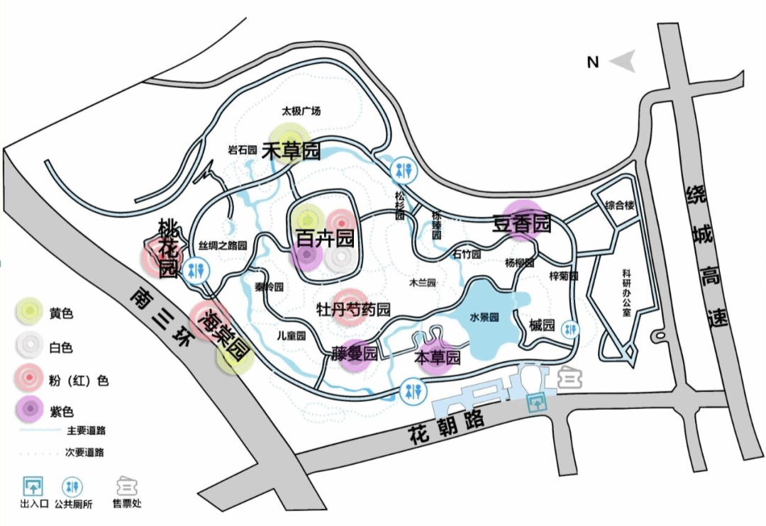观赏区域:百卉园、海棠园、禾草园周边