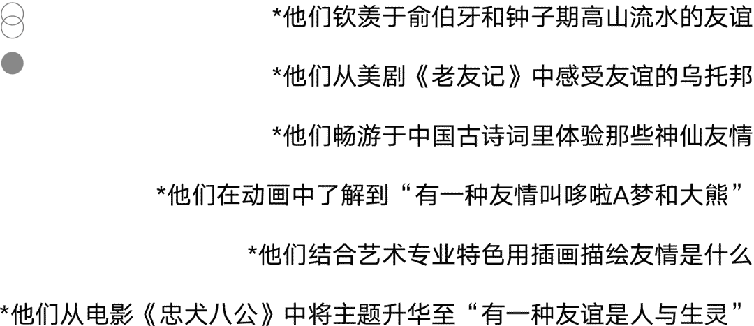 活动总结:本次“友情之我见”的小组分享活动培养学生关于友情的资料搜集和整理能力,提升学生知识延展、价值判断和英语语言交际等综合应用能力,拓宽其古今中外的文化视野,丰富精神生活,深化对友情、社会和人生的理解,进而有助于构建和谐的人际关系,最终达到大真,大爱,大诚,大智的境界,即内在心灵的至善。