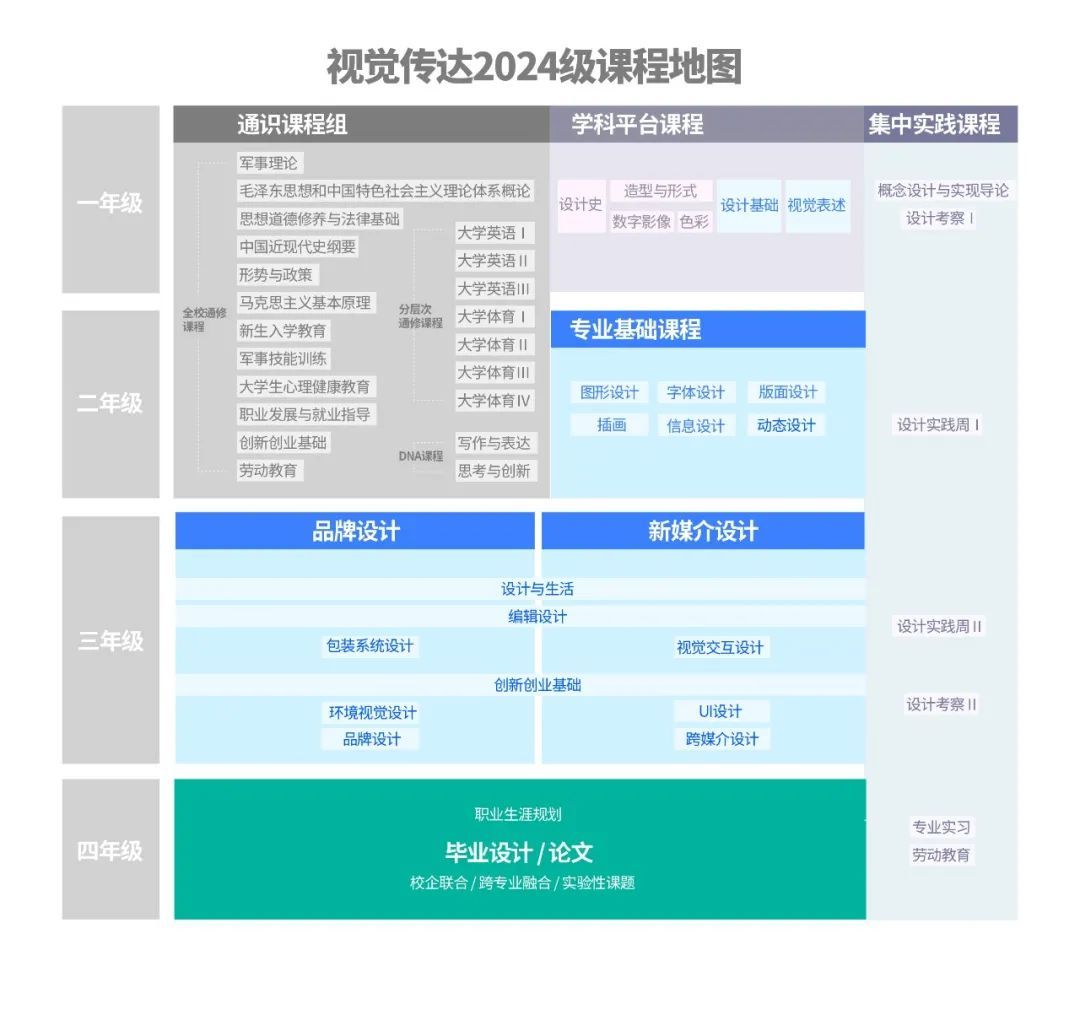 第二年:图形设计、字体设计、版面设计、插画、动态设计、信息设计、设计实践周Ⅰ