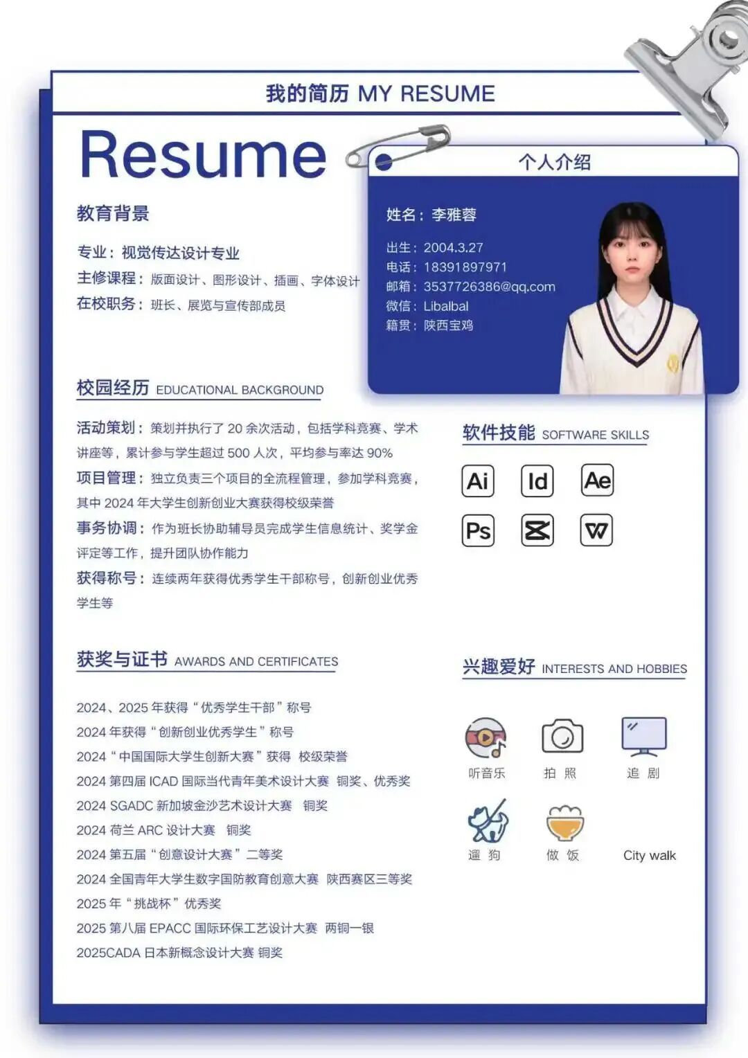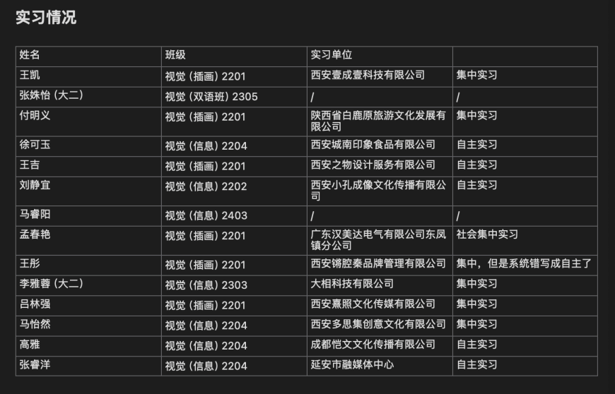 经过一次次的作品优化和作品集调整,同学们都打造出自己的求职 “敲门砖”,并获得了高质量的实习机会。王凯入职西安壹成壹科技有限公司做视觉插画,付明义去了陕西省白鹿原旅游文化发展有限公司参与文创设计,李雅蓉(大二)凭借打磨后的作品集,拿到大相科技有限公司的集中实习机会,刘静宜则加入西安小孔成像文化传播有限公司做信息设计…… 每个学生的实习方向,都和在工作室积累的项目、赛事经验高度匹配,真正实现了 “学有所用”。