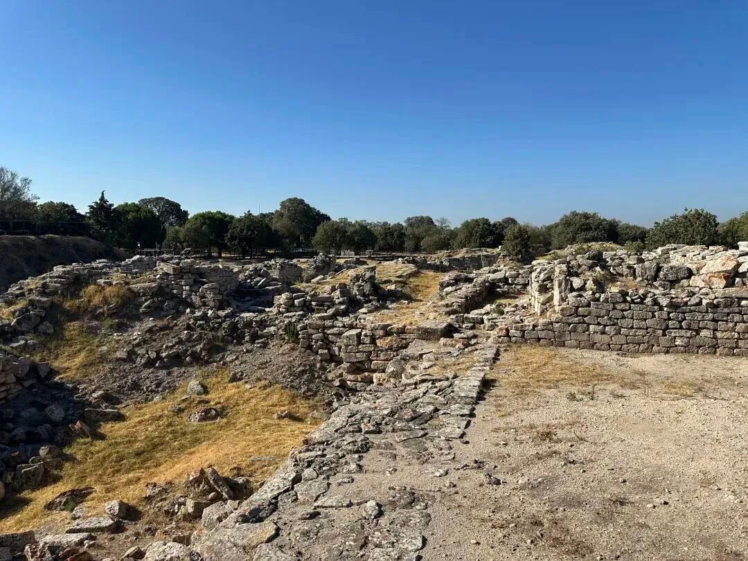 清晨坐上汽车,下车时,丘陵在爱琴海的风中舒展开来——特洛伊,这个在史诗里听过千万遍的名字,从字句间走了出来,化作眼前断壁残垣的模样。泥土里还嵌着陶片,风化的石墙保持着被战火啃噬过的齿痕。站在这片被考古学家一层层剥开的土地上,突然明白,原来神话并不是凭空编造的幻梦,它只是被时光埋得深了些。特洛伊古城,因《荷马史诗》而闻名,也是荷马笔下特洛伊战争和木马计发生的地点。这个遗迹的发现,是连接神话和历史的桥梁。我们在现场还看到了正在工作中的考古人员。