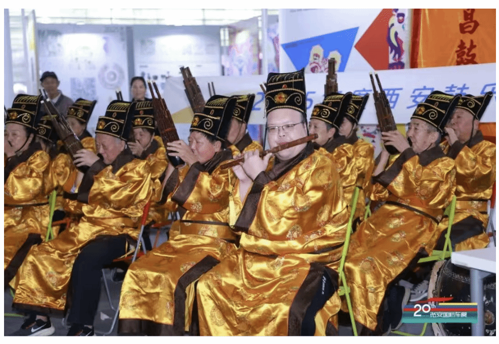 西安大吉昌鼓乐社的长者们奏响了千年古都的非遗之音,为观众呈现了被誉为“中国古代交响乐”的西安鼓乐。