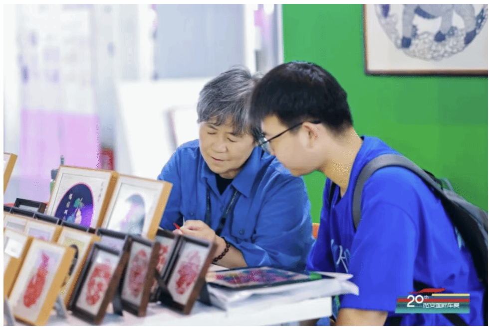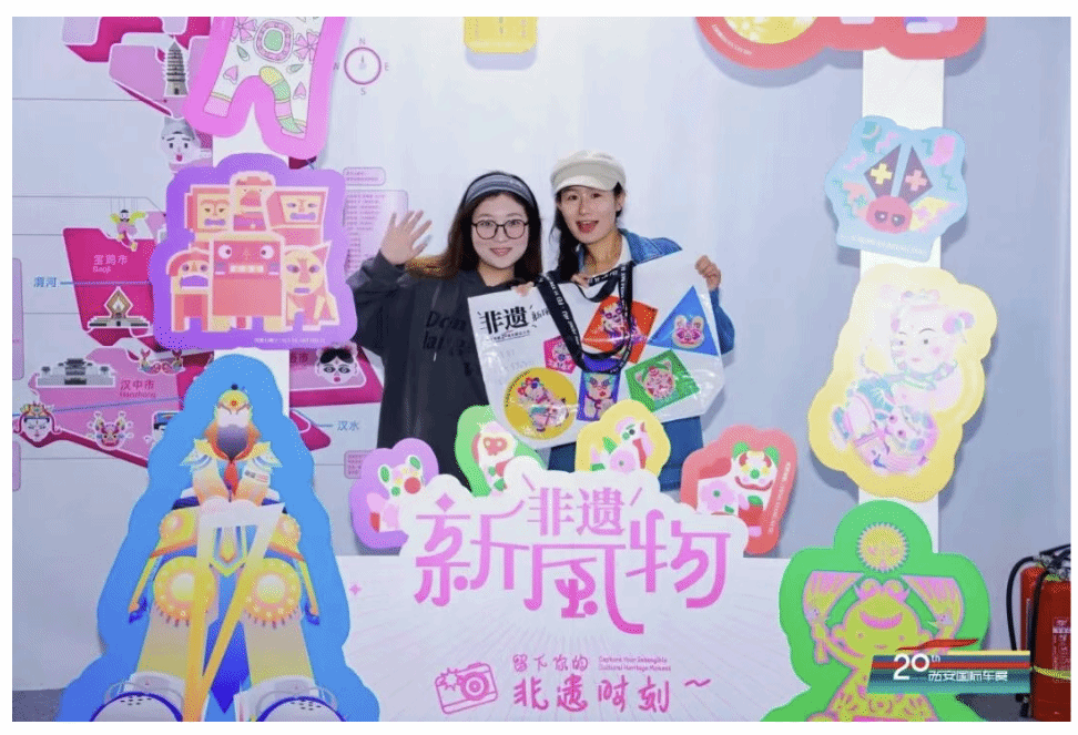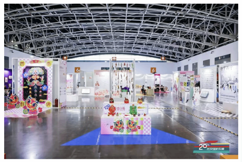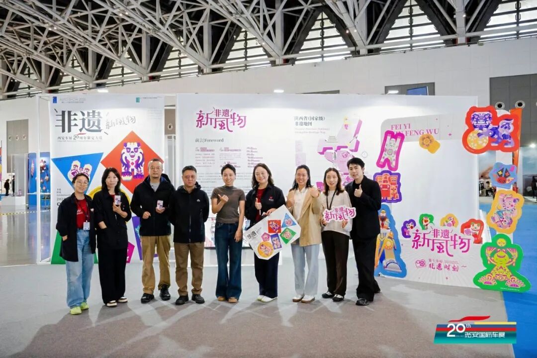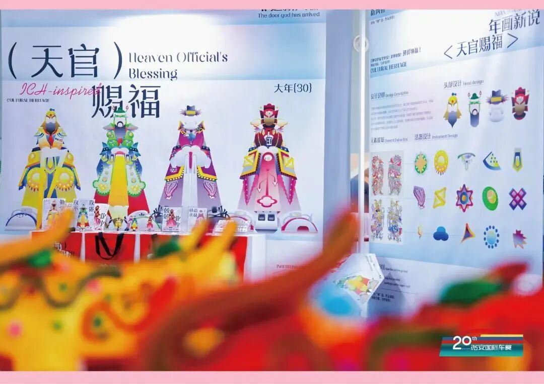 本次非遗新风物³ —— 西安车展20周年限定大赏以视觉传达设计专业《设计考察II》课程成果为起点,真正实现了从“作业”到“作品”的转化,最终呈现为一个可落地、成体系的非遗创新设计展。我们携手陕西华商国际会展有限公司,以车展为平台实现跨界联动,推动非遗走出课堂、进入大众视野,使其不再仅仅是一种文化符号,更成为可感知、可体验的生活元素。展览现场不仅呈现非遗作品,更设置互动体验环节,让观众亲手感受非遗魅力。传统艺术与未来科技在同一场景中碰撞,为“车生活”注入人文温度与创新趣味。