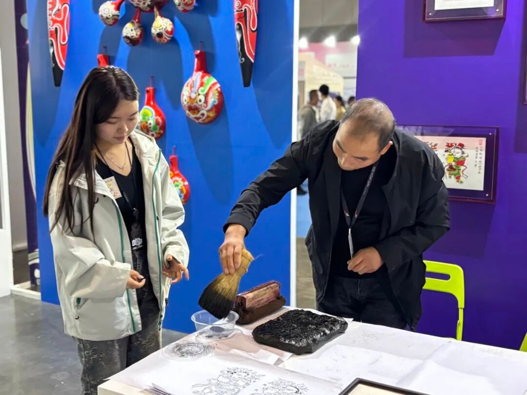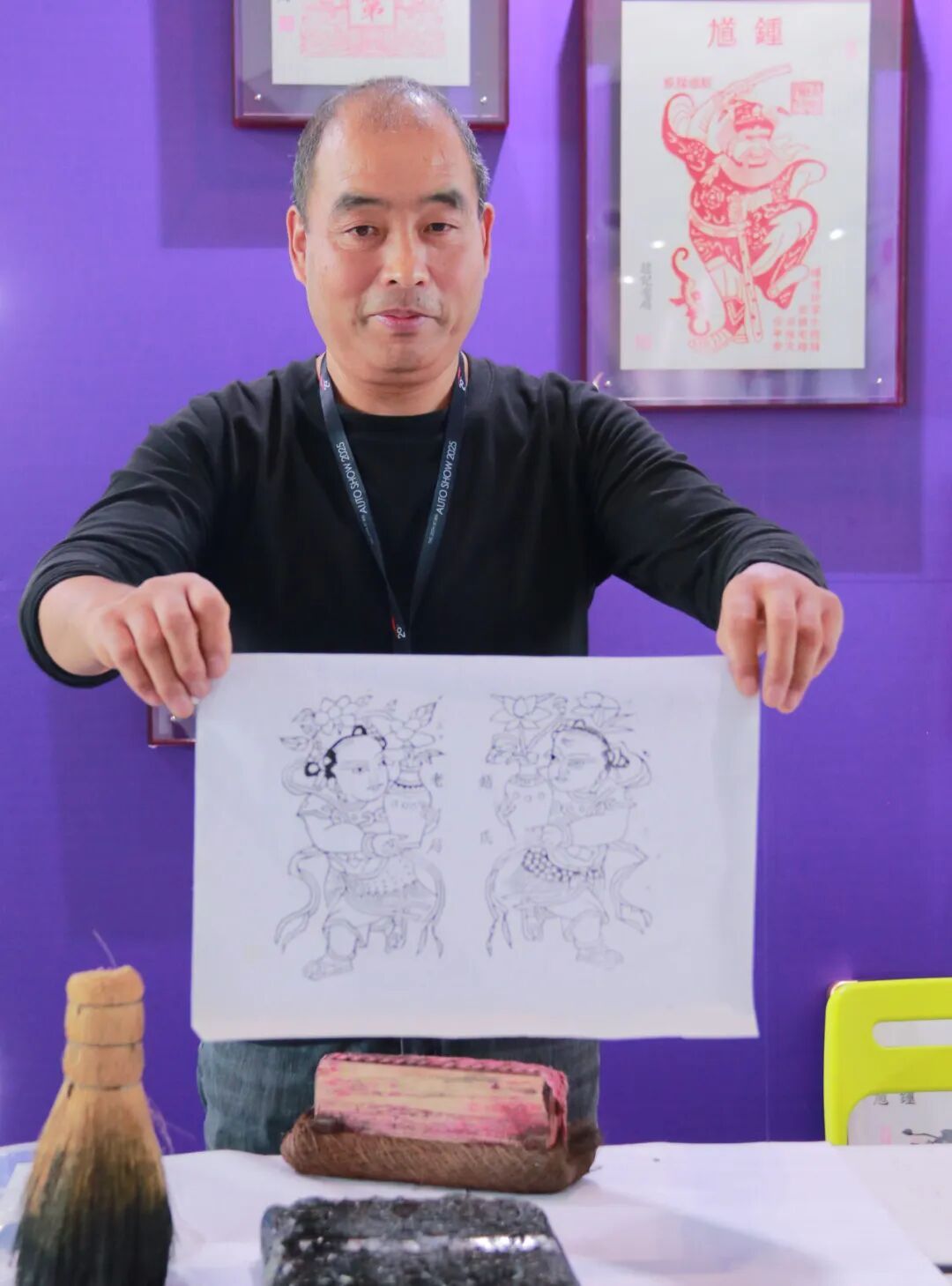蒲城传统木版图画传承人赵凯军老师现场演示雕刻与印刷全过程,让观众近距离体会这门传统技艺的生动与深厚。