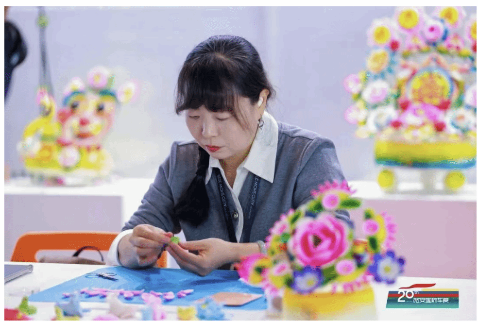 在泥塑工坊,凤翔泥塑传承人胡锦伟老师创意融合小汽车与泥塑造型,孩子们尽情用色彩装饰属于自己的泥塑小车,沉浸式体验非遗的魅力。