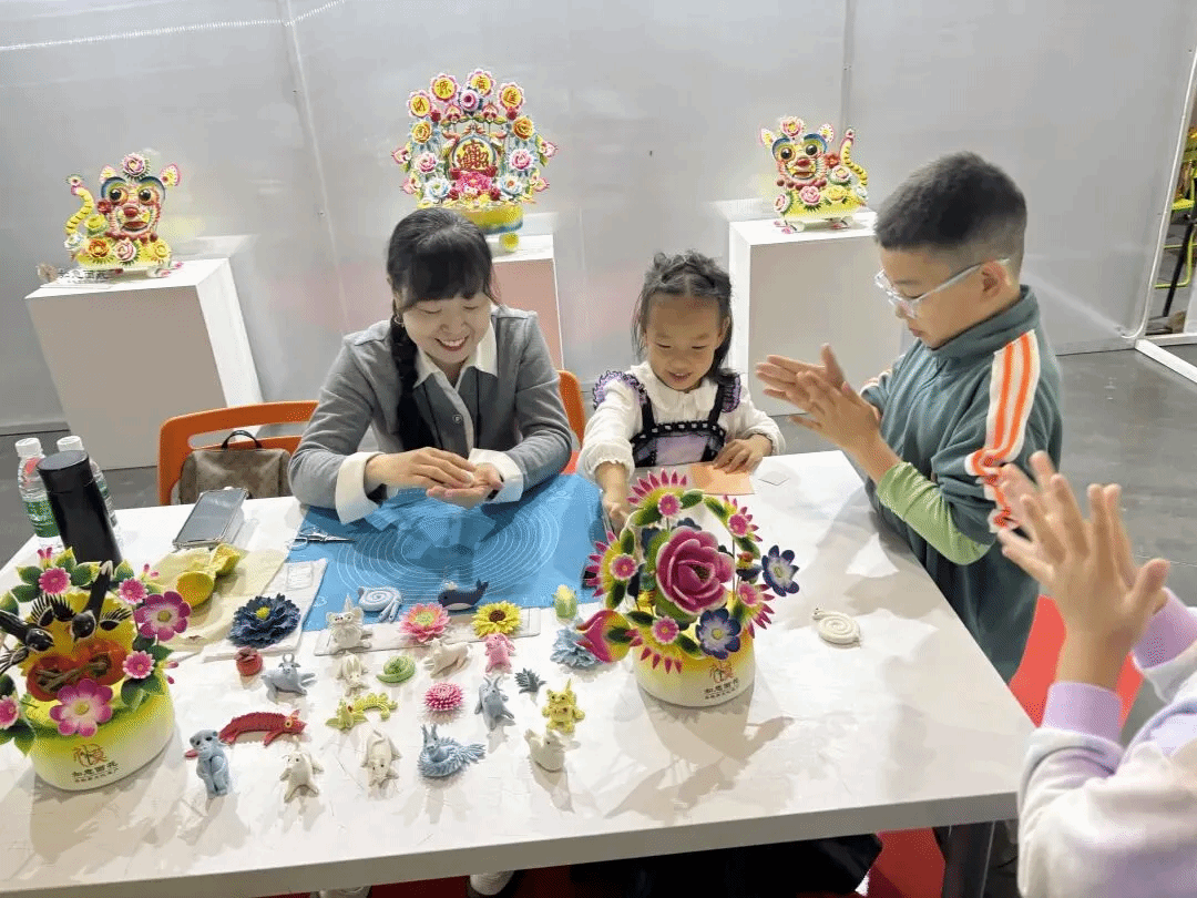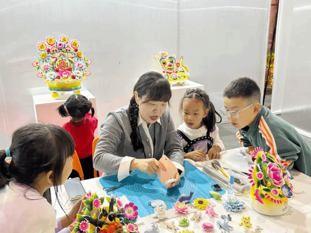如意面花传承人王磊老师手把手教孩子们捏制面花,在欢乐的互动中传递着非遗的技艺与温度。