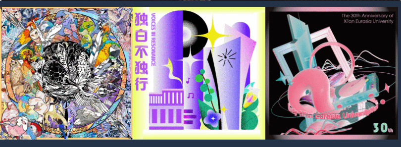 在西安欧亚学院三十周年校庆之际,学子薛御鑫将办学理念与校园记忆谱写成词,以原创说唱献礼母校。作品同步打造数字视觉艺术,用图形勾勒三十年发展。作品以新媒体为媒介,实现听觉与视觉的创意共生。
