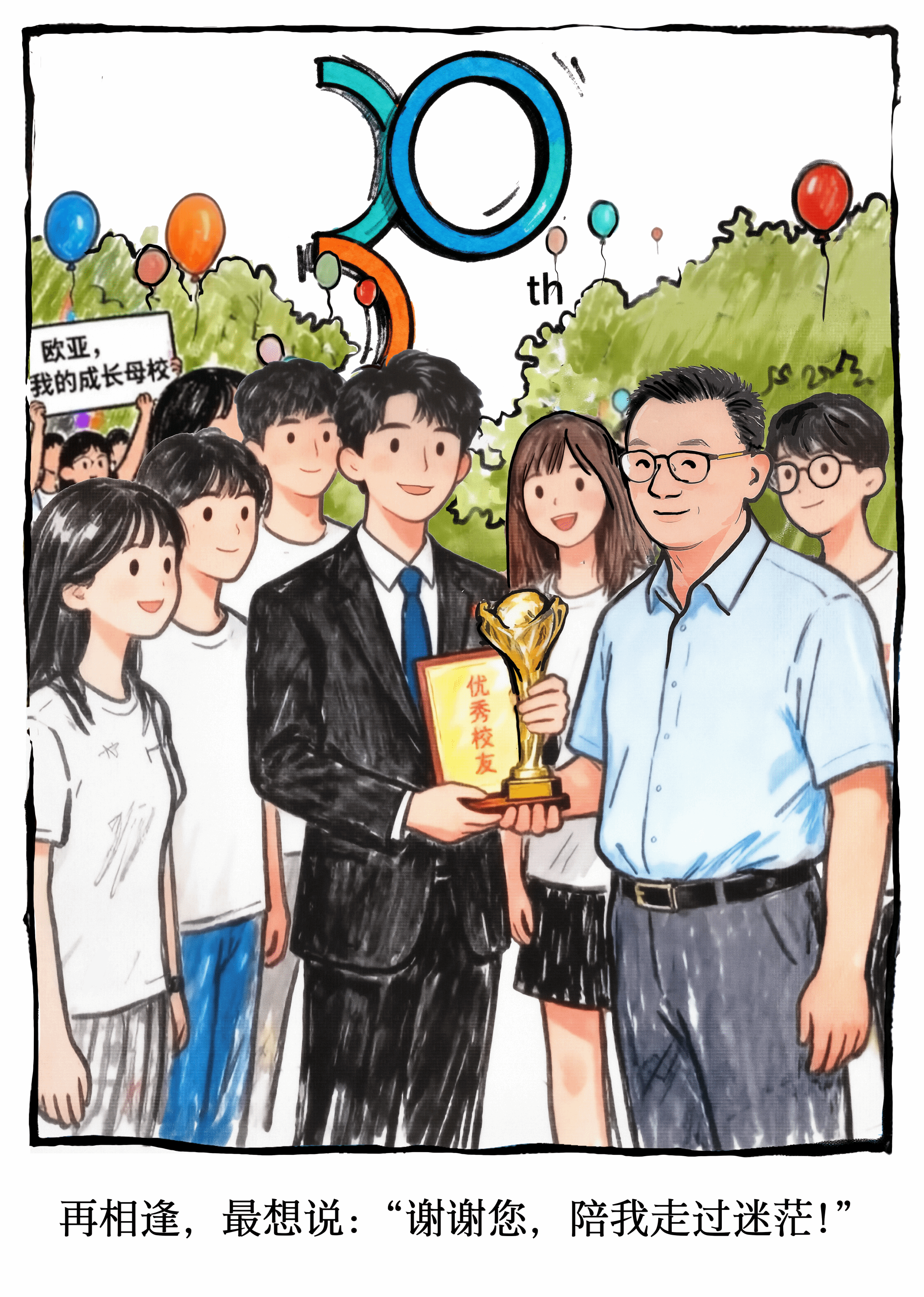 这是一次个人记忆与集体探索的跨时空对话。作品由《我们的十年——校园景观插画》与《欧亚AR寻宝记》共同构成,分别从“静观”与“动探”两个维度,重塑我们与校园的情感连接。手绘插画的温度,深情镌刻了一位学子成长为教师的生命轨迹。笔触之下,建筑不仅是风景,更是视角从“仰视”到“平视”、从接收到传承的岁月见证。AR交互则以数字科技为引擎,将30处校园地标化为趣味互动的AR秘境。师生校友在虚实交织的“寻宝”旅程中,共同编织了一份生动活泼的当代校园记忆。