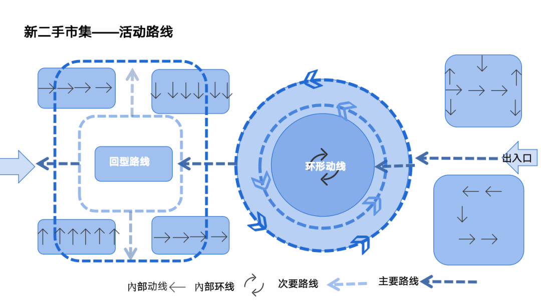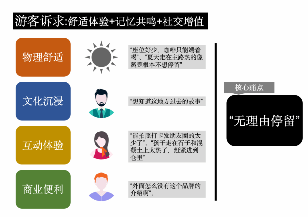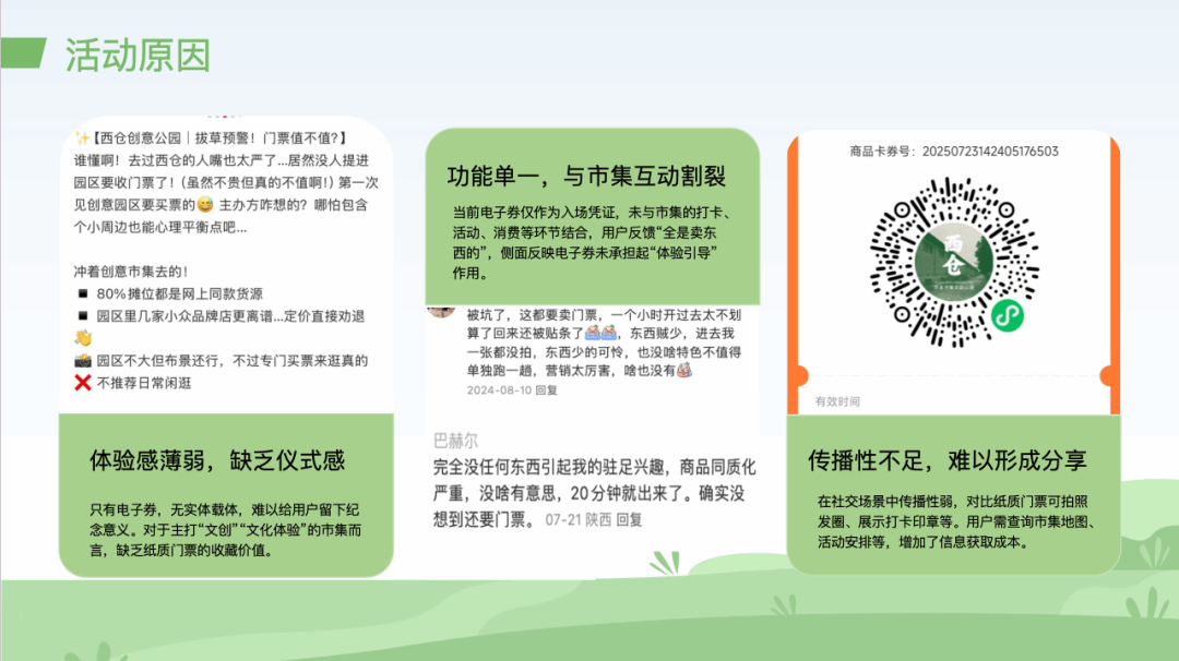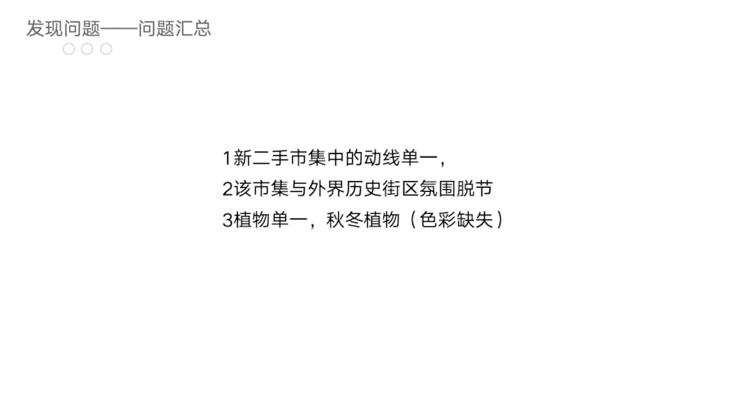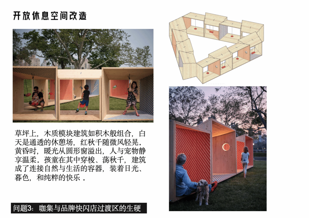 调研市集品牌快闪区域及人群行为,分析游客分布、动线与环境问题,提出绿化降温、遮阳廊架及动线优化方案,体现环境设计在商业场景中的思考与实践能力。
