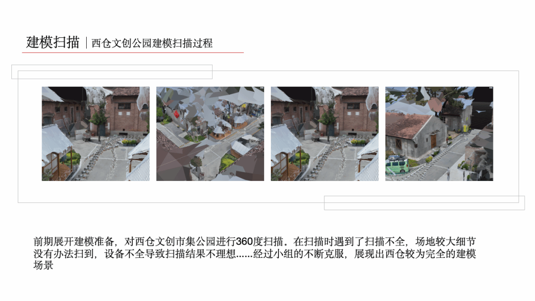 利用实地调研和360度扫描完成西仓市集的三维建模,克服扫描不全与设备限制,呈现历史建筑与现代改造并存的真实空间,为数字展示与空间研究提供实践案例。