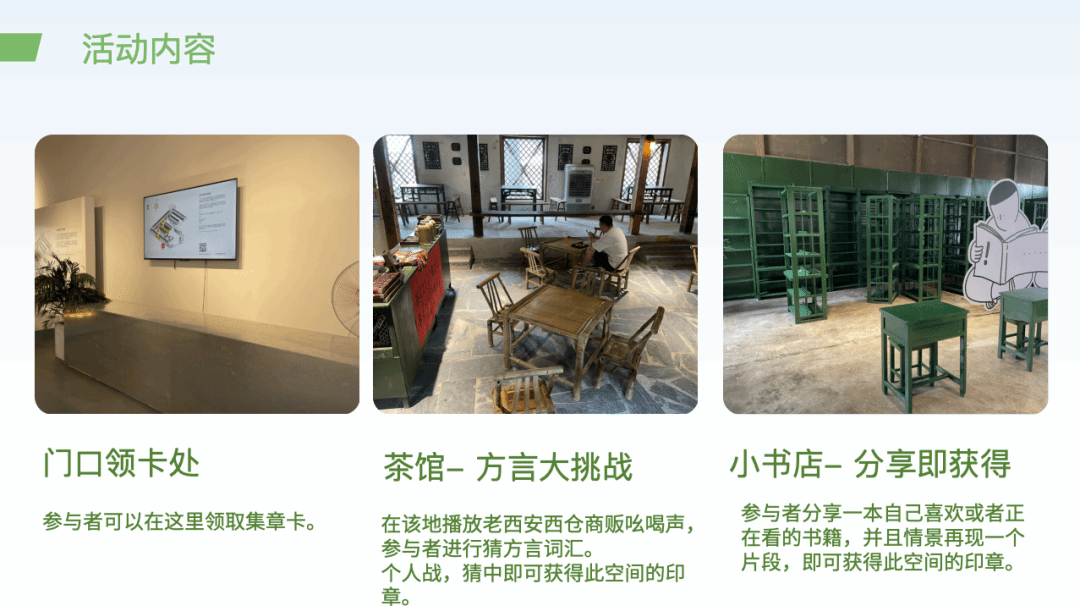 不同于传统课堂,本项目将学生直接置入真实商业与文化环境,学生在西仓市集岗位实践中自主发现问题,如市集信息混杂、空间设备不足、游客参与感不强等,在教师指导下形成课题,再进行方案设计与作业产出。任务从信息导览、活动策划、影像记录、文创建模到空间优化等多方向展开。实践过程中,方案多次迭代调整,学生在解决问题的同时积累了专业能力和团队协作经验。