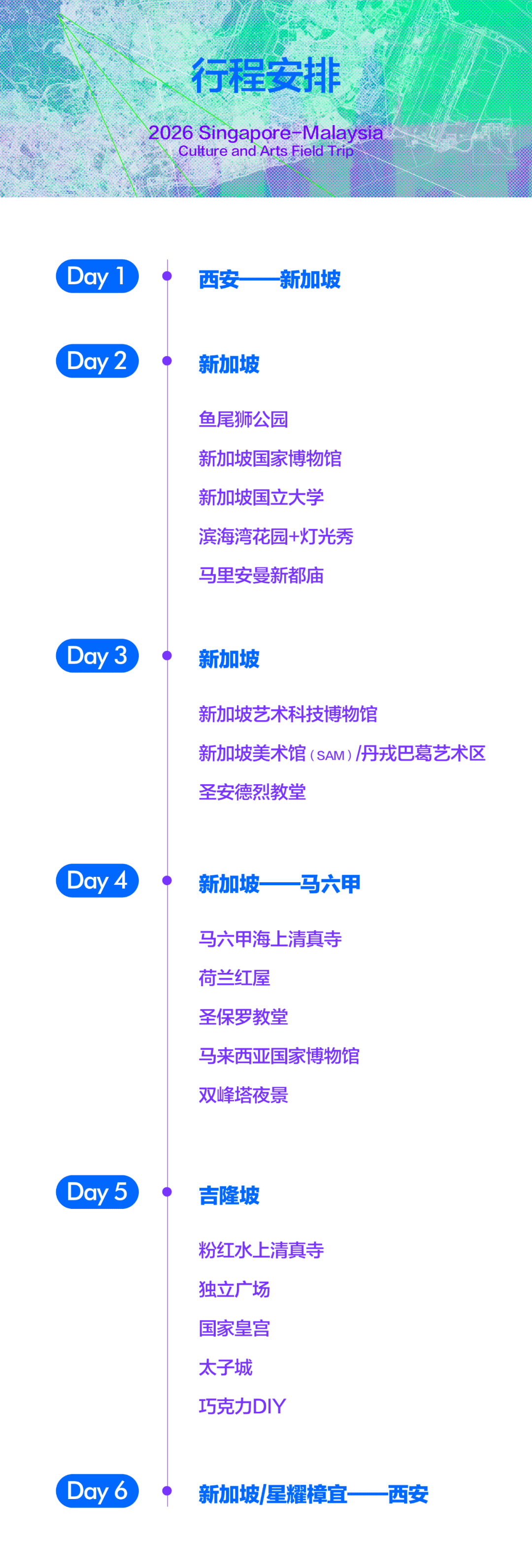 新加坡,一个以干净、整洁和秩序井然著称的花园城市国家,在有限的资源条件下,通过极致的设计与规划,将艺术、设计、人文、自然与科技熔铸为一个高效且充满活力的现代都市。从滨海湾花园的超级树到艺术科学博物馆的莲花造型,这座城市本身就像一件庞大的装置艺术。鱼尾狮公园的古老传说与金沙酒店的现代轮廓在同一个画面中对话;在国家博物馆,系统梳理这座城市的成长年轮;前往国立大学触摸驱动这座城市前行的精英教育脉搏;穿行于街市,感受不同文化的和谐共存。